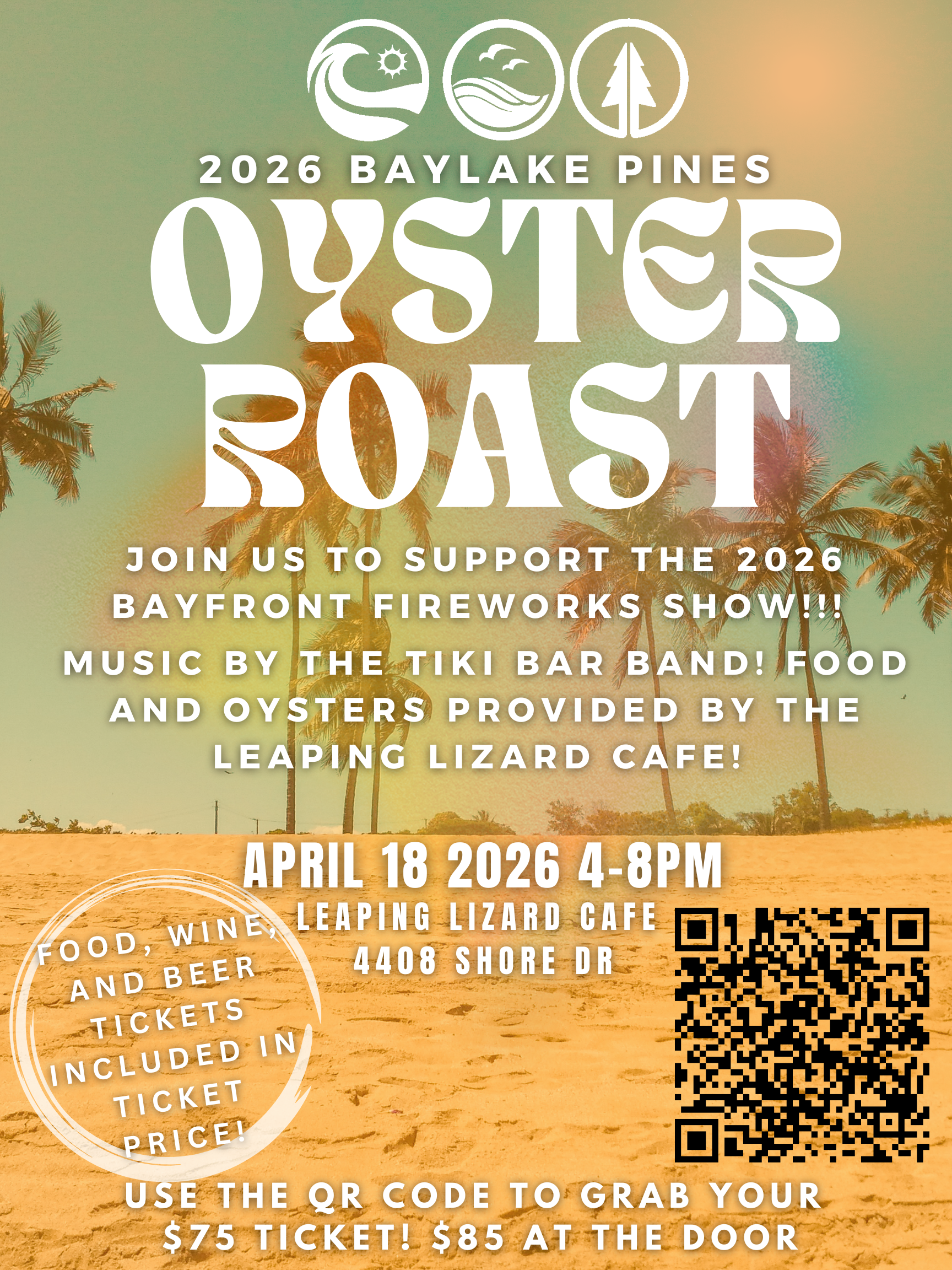 2026 Baylake Pines Oyster Roast Tickets! Come support the 2026 Bayfront area fireworks show!!!